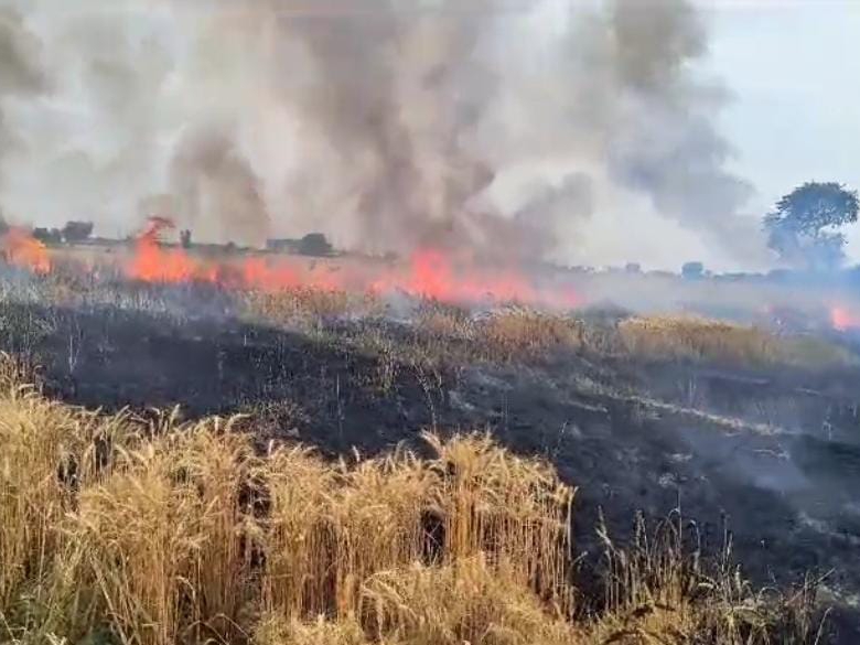 गदरपुर। नगर के ग्राम बरखेड़ा में करीब 9 बजे बिजली तार की चिंगारी से गेहूं के खेत में आग लग गई। तेज हवाओं के चलते आग ने विकराल रूप ले लिया। बताया जा रहा है कि करीब 10एकड़ गेहूं की फसल जलकर राख हो गई।