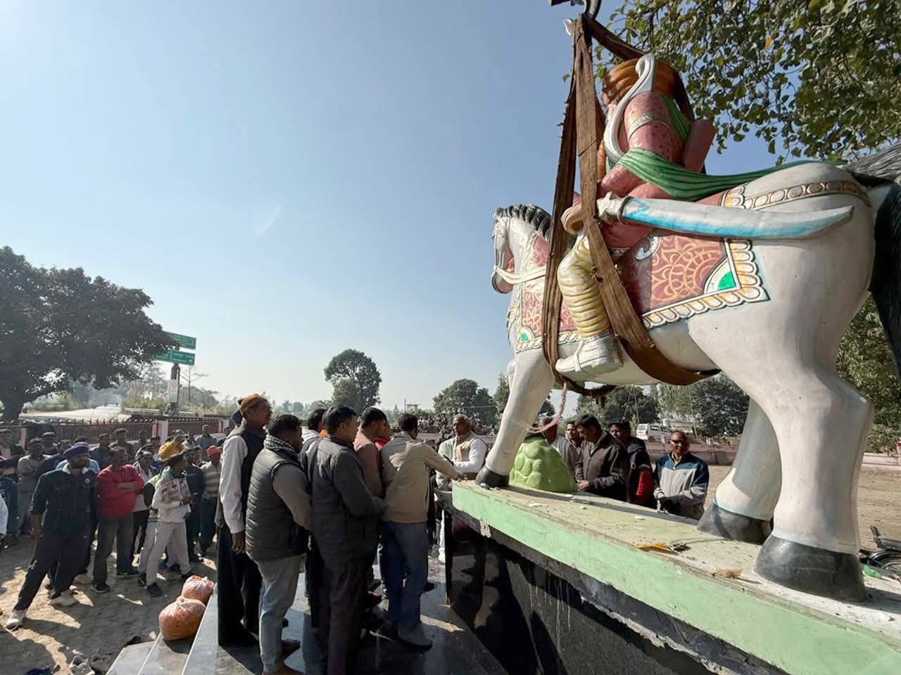 गूलरभोज। बुक्सा जनजाति के आराध्य राजा जगत देव की डलबाबा मंदिर परिसर में स्थापित प्रतिमा को लगभग 10 माह पूर्व असामाजिक तत्वों ने खंडित कर दिया था। रविवार को गदरपुर विधायक अरविंद पांडे ने बुक्सा समाज के लोगों के साथ विधिवत रूप से खंडित मूर्ति का बौर जलाशय में विसर्जन कराया। विधायक पांडे ने कहा कि कुछ राजनीतिक कारणों से प्रतिमा की पुनः स्थापना में अनावश्यक देरी हुई। जो कार्य दो माह में पूरा हो जाना चाहिए था, उसमें 10 माह से अधिक समय लग गया। बुक्सा समाज के पुरोहितों द्वारा निर्धारित तिथि के अनुसार 21 दिसंबर को अष्टधातु से निर्मित नई प्रतिमा की विधिवत स्थापना की जाएगी।