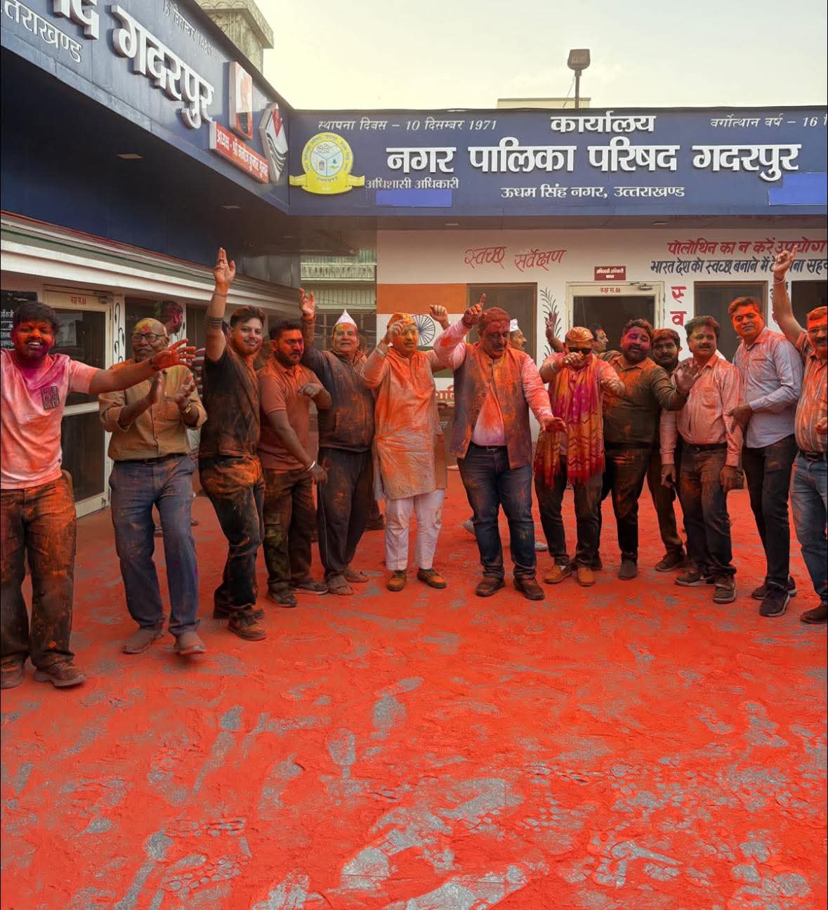 गदरपुर। नगर पालिका परिसर में होली का पर्व सोमवार को उत्साह और उल्लास के साथ मनाया। रंग-गुलाल उड़ाकर कर्मचारियों, मीडिया कर्मियों, जनप्रतिनिधियों और नागरिकों ने एक-दूसरे को होली की शुभकामनाएं दीं। ढोल-नगाड़ों की धुन पर सभी ने पारंपरिक अंदाज में पर्व का आनंद लिया। पालिका अध्यक्ष एवं अधिशाषी अधिकारी ने सभी को होली की बधाई देते हुए भाईचारा और सौहार्द बनाए रखने की अपील की।