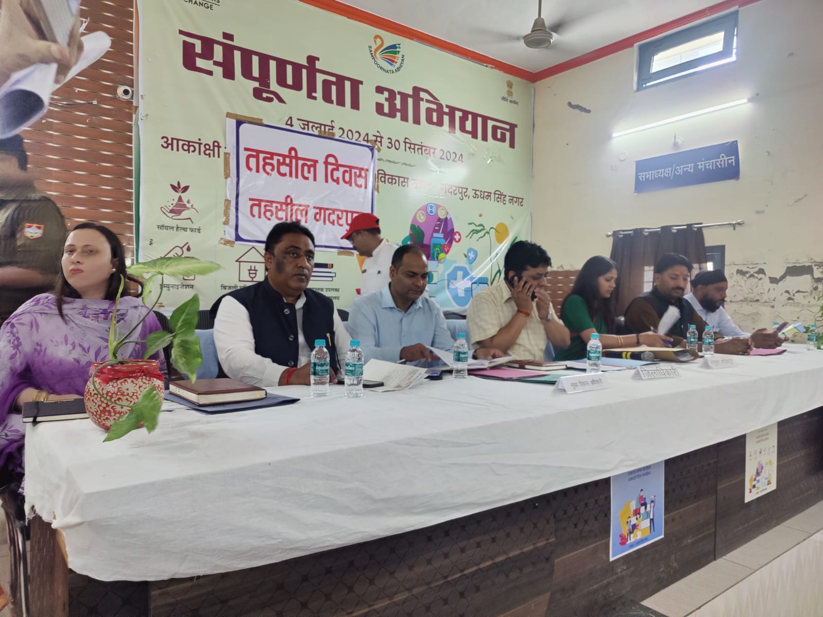 गदरपुर (सागर धमीजा)। जिलाधिकारी नितिन भदौरिया की अध्यक्षता में ब्लाक कार्यालय में आयोजित जिला स्तरीय तहसील दिवस में करीब 70 से अधिक शिकायेंत दर्ज की गयी। जिसमें अधिकांश शिकायतों का निस्तारण मौके पर किया गया कुछ शिकायतों को संबंधित विभाग के अधिकारियों को स्थानांतरित करते हुए जिलाधिकारी ने शीघ्र निस्तारण करने के दिशा निर्देश दिये। तहसील दिवस पर विभिन्न विभागों एवं समूहों द्वारा स्टाल लगाये गये और लोगों को विभिन्न जानकारियां दी गयी।