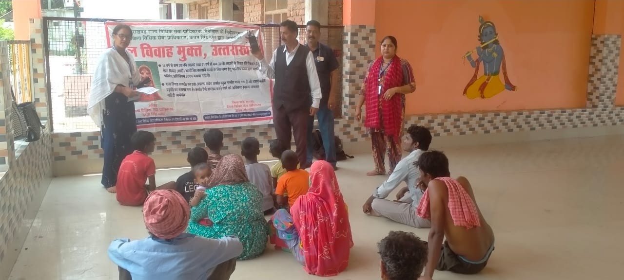 गूलरभोज। माननीय सचिव महोदय के आदेशानुसार  नगर पंचायत गूलरभोज वार्ड नंबर 4 में विषय बाल विवाह मुक्त उत्तराखण्ड चाइल्ड मैरिज फ्री उत्तराखंड पर जागरूकता कार्यक्रम किया गया और नालसा टोल-फ्री नंबर 15100 के विषय पर जानकारी दी।