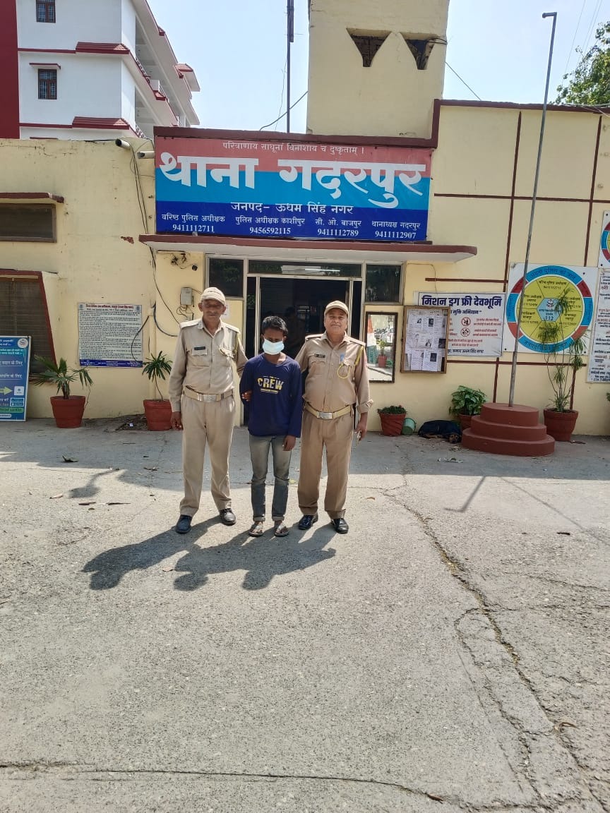 चोरी की घटना का शीघ्र अनावरण कर व अभियुक्त की गिरफ्तारी हेतु श्रीमान वरिष्ठ पुलिस अधीक्षक महोदय जनपद उधम सिह नगर निर्देशित किया गया था। जिसपर थाना गदरपुर पुलिस टीम द्वारा सुरागरसी, पतारसी करते हुए तथा सीसीटीवी फुटेज के माध्यम से अभियुक्त को तस्दीक कर 29 अप्रैल 2025 को मुखविर की सूचना पर थाना क्षेत्रान्तर्गत करतारपुर रोड गदरपुर से अभियुक्त *आकिल पुत्र मजिद शाह, निवासी ग्राम गुगावली, थाना कुप्पे, तहसील सम्भल, जिला सम्भल उ0 प्र0 उम्र 25* *वर्ष* हाल पता अपने दीदी सबीना का घर करतारपुर रोड गदरपुर थाना गदरपुर जनपद उधम सिह नगर को वादी मुकदमा के दुकान से चोरी किये हुए सामान घटना में *प्रयुक्त एक अदद सरिया (लोहा), व एक अदद आधार कार्ड वादी मुकदमा तथा 32 सिक्के कुल 180 रू0, व कपडे के थैलै अन्दर चोरी किये गये 07 अदद सिगरेट की अलग अलग डिब्बीया, 02 पैकेट पान मसाला के साथ को अन्तर्गत धारा 305 (ए)/331 (4) /317 (2) बी0एन0एस0* में गिरफ्तार किया गया।
