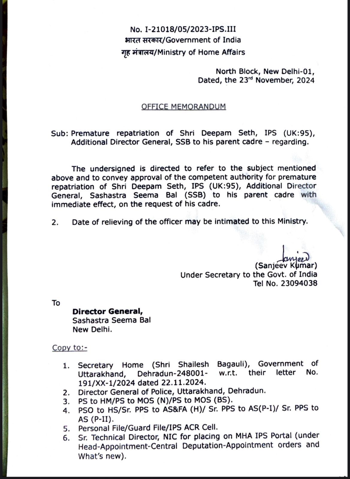 उत्तराखंड( संवाद सूत्र)पुलिस महकमे के लिए अब तक की बड़ी खबर : IPS अधिकारी दीपम सेठ लौट रहे हैं उत्तराखंड
