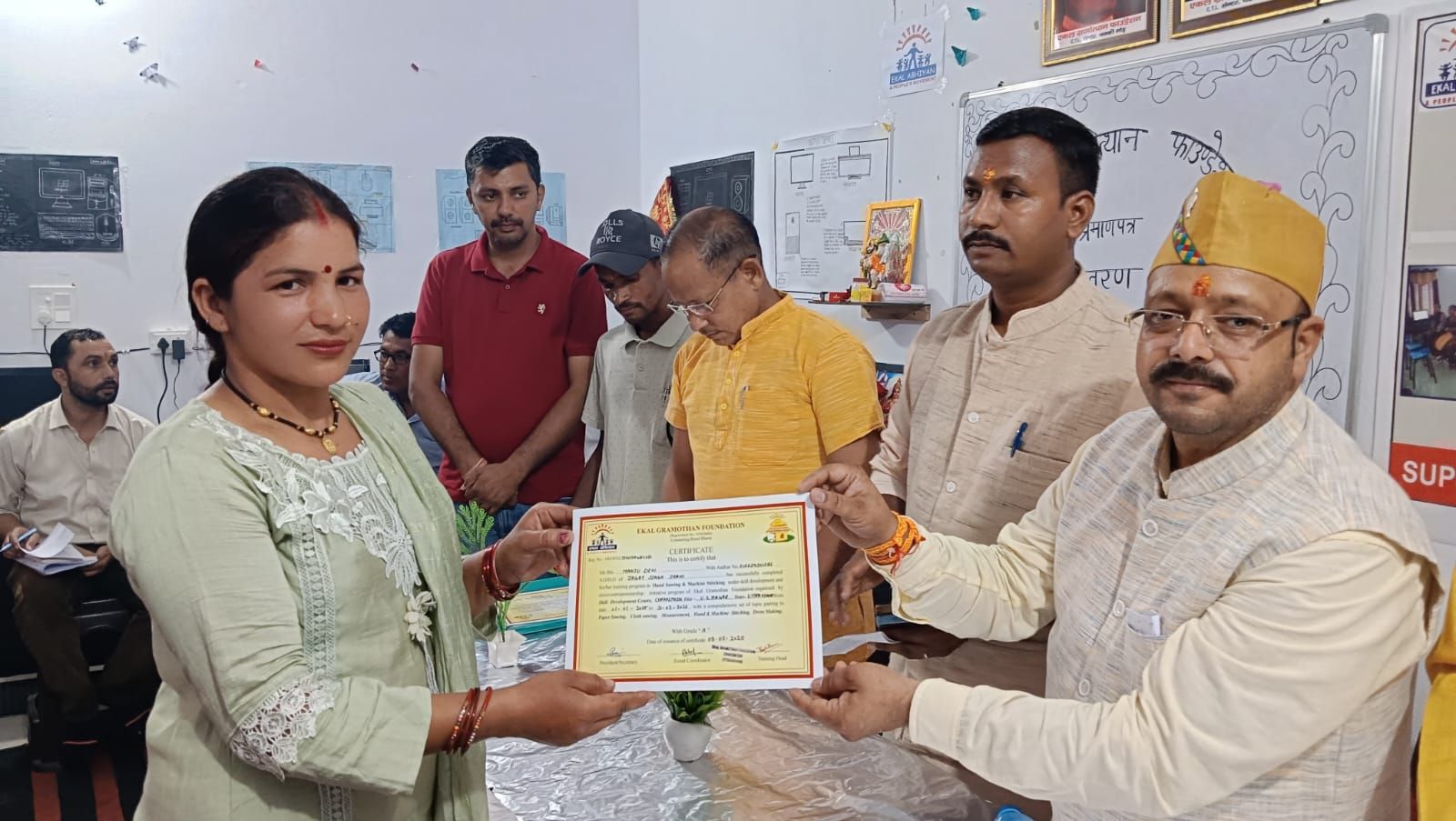 गूलरभोज ( संवाद सूत्र )आई वी डी केंद्र चक्कीमोड़ के पहले सत्र के CTL तथा WEC के डिप्लोमा वितरण किये गये और सिलाई और कंप्यूटर सिखने वाले बच्चों को प्रतियोगिता कराई गई जिसमे प्रथम स्थान द्वितीय स्थान तृतीय स्थान पर पुरस्कार दिया गया | CTL में 39 बच्चों को डिप्लोमा वितरण किए गए तथा WEC में 10 बच्चों को डिप्लोमा वितरण किए गए | बच्चों की ऑनलाइन प्रतियोगिता कराई गई, जिसमें बच्चों ने बढ़ चढ़कर भाग लिया और अपनी प्रतिभा दिखाई इस कार्यक्रम में मुख्य अतिथि राज्य दर्जा मंत्री श्रीमान गीताराम गॉड जी , अनुसूचित जनजाति आयोग के सदस्य श्रीमान बाबू सिंह तोमर जी ,समिति अध्यक्ष श्रीमान राकेश सिंह जी,समिति अध्यक्ष श्रीमान योगेश पानू जी,बेरिया दौलत के संच अध्यक्ष उदयभान जी,सचिव श्री राजेश कुमार जी,संभाग उत्तराखंड के संभाग अभियान प्रमुख श्रीमान अरविन्द कनौजिया जी,अंचल ऊधम सिंह नगर के अंचल अभियान प्रमुख दीप सिंह जी हिमांशु गुप्ता जीआई वी डी मैनेजर सिलाई ट्रेनर प्रीती रानी जी कंप्यूटर ट्रेनर कविता बिष्ट जी फील्ड कोऑर्डिनेटर सौरभ मिश्रा जी एवं आचार्य उपस्थित रहे।