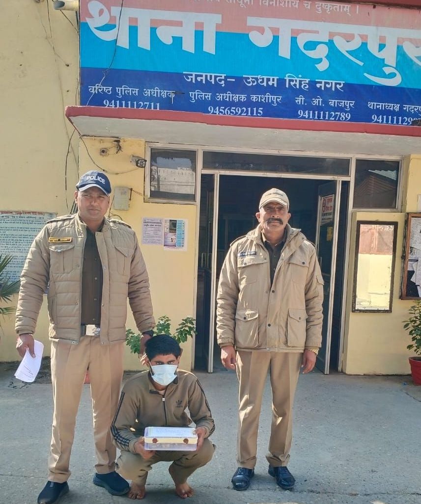 श्रीमान वरिष्ठ पुलिस अधीक्षक महोदय जनपद उधम सिह नगर महोदय द्वारा संदिग्ध व्यक्तियों व अवैध शस्त्र/ हथियार रखने वालों के विरुद्ध आवश्यक कार्यवाही करने के दिशा निर्देश दिये गये थे। आदेश निर्देशों के क्रम श्रीमान पुलिस अधीक्षक महोदय अपराध /पुलिस अधीक्षक महोदय काशीपुर जनपद उधम सिह नगर तथा क्षेत्राधिकारी महोदय बाजपुर के कुशल पर्यवेक्षण मे तथा प्रभारी निरीक्षक गदरपुर के नेतृत्व में थाना गदरपुर पुलिस टीम द्वारा मुखविर खास की गोपनीय सूचना पर ग्राम बलराम नगर शमशान घाट के पास से अभियुक्त इकराम पुत्र कलुवा निवासी कोपा कृपाली गूलरभोज थाना गदरपुर जनपद ऊधम सिंह नगर उम्र- 19 वर्ष को एक अदद अवैध तमंचा 315 बोर मय 01 अदद जिन्दा कारतूस बरामद होने पर उक्त व्यक्ति को उसके जुर्म धारा 3 /25 आयुध अधिनियम से अवगत कराते हुए दिनांक हिरासत पुलिस किया गया। गिरफ्तारशुदा अभियुक्त के विरुद्ध बरामदगी माल के आधार पर मुकदमा FIR N0.311/ 2025 U/S 3 /25 आय़ुध अधिनियम के तहत अभियोग दर्ज कराया गया* । अभियुक्त को माननीय न्यायालय के समक्ष पेश किया जा रहा है। अभियुक्त के आपराधिक इतिहास की जानकारी की जा रही है। बरामदगी का विवरण