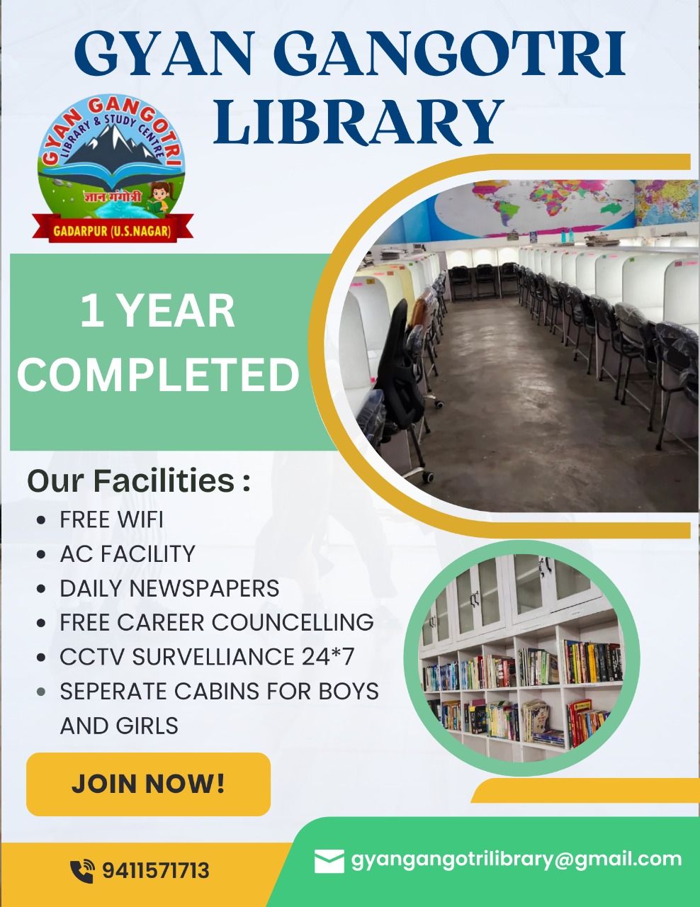 वार्ड नंबर 5 गदरपुर ने अपने 1 वर्ष का सफलतापूर्वक कार्यकाल पूर्ण कर लिया है। 10 सितंबर 2024 को ज्ञान गंगोत्री लाइब्रेरी का शुभारंभ हुआ था। ज्ञान गंगोत्री लाइब्रेरी की संचालिका नेहा सक्सैना की मेहनत और लगन का परिणाम रहा की एक वर्ष की अल्पावधि के दौरान ही ज्ञान गंगोत्री लाइब्रेरी ने छात्र-छात्राओं में अपनी विशिष्ट पहचान साबित की है। यहां के कोलाहल से दूर शांत वातावरण और अनुशासनात्मक व्यवस्था के चलते मानसी जोशी ने यूजीसी नेट जेआरएफ इन हिस्ट्री, दीक्षा पुरी ने डीएलएड डाइट रुद्रपुर और खुशी ठुकराल ने नीट यूजी महात्मा गांधी मेडिकल कॉलेज इंदौर में प्रवेश पाने में सफलता हासिल की है। 10 सितंबर 2025 को #ज्ञान गंगोत्री लाइब्रेरी की स्थापना का एक वर्ष पूर्ण होने पर सभी छात्र-छात्राओं के साथ सेलिब्रेशन हुआ। ज्ञान गंगोत्री लाइब्रेरी से जुड़े सभी सहयोगियों को बहुत-बहुत बधाई