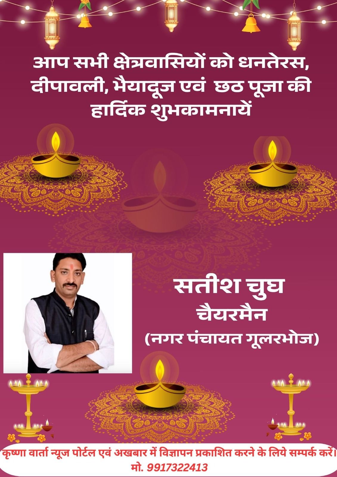 गुंजन सुखीजा ने क्षेत्रवासियों से अपील करते हुए कहा कि वे इस महापर्व को आपसी प्रेम, भाईचारे और सौहार्द के साथ मनाएं और छठ मैया के आशीर्वाद से सबके जीवन में सुख, स्वास्थ्य एवं समृद्धि का आगमन हो।