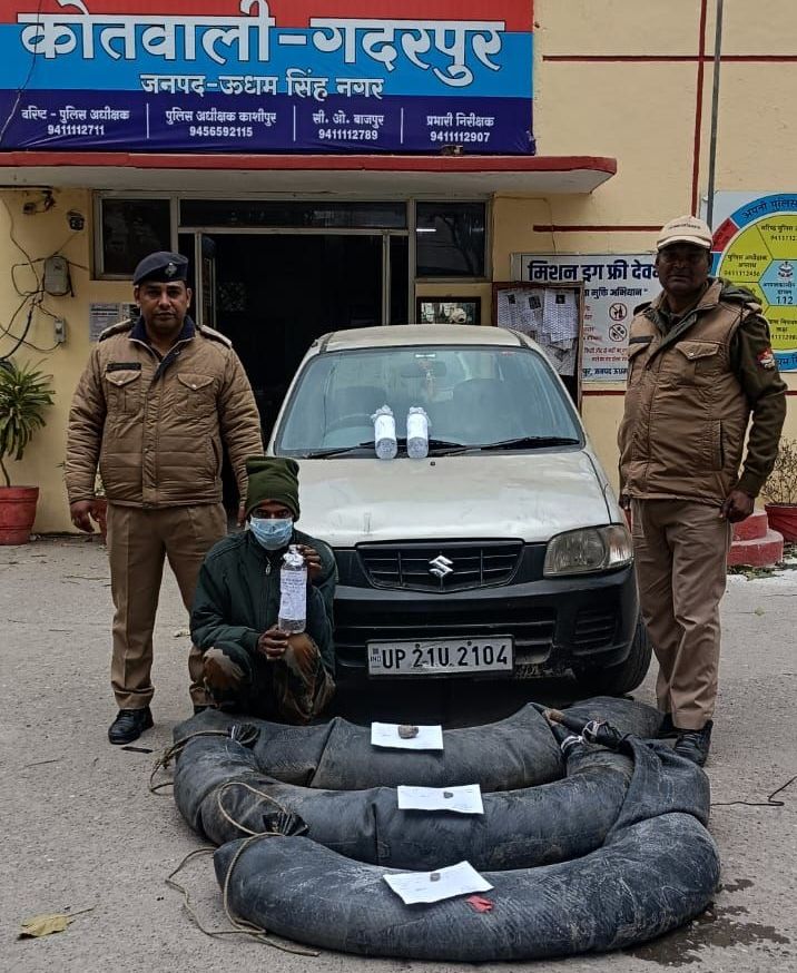 कोतवाली गदरपुर श्रीमान वरिष्ठ पुलिस अधीक्षक महोदय, जनपद उधम सिंह नगर द्वारा जनपद में अवैध कच्ची शराब की रोकथाम एवं नशे के विरुद्ध प्रभावी अभियान चलाए जाने के निर्देश दिए गए हैं। उक्त निर्देशों के क्रम में श्रीमान पुलिस अधीक्षक काशीपुर महोदय के निर्देशन एवं क्षेत्राधिकारी बाजपुर महोदय के पर्यवेक्षण तथा प्रभारी निरीक्षक कोतवाली गदरपुर के नेतृत्व में चौकी गूलरभोज पुलिस द्वारा कार्रवाई की गई।
