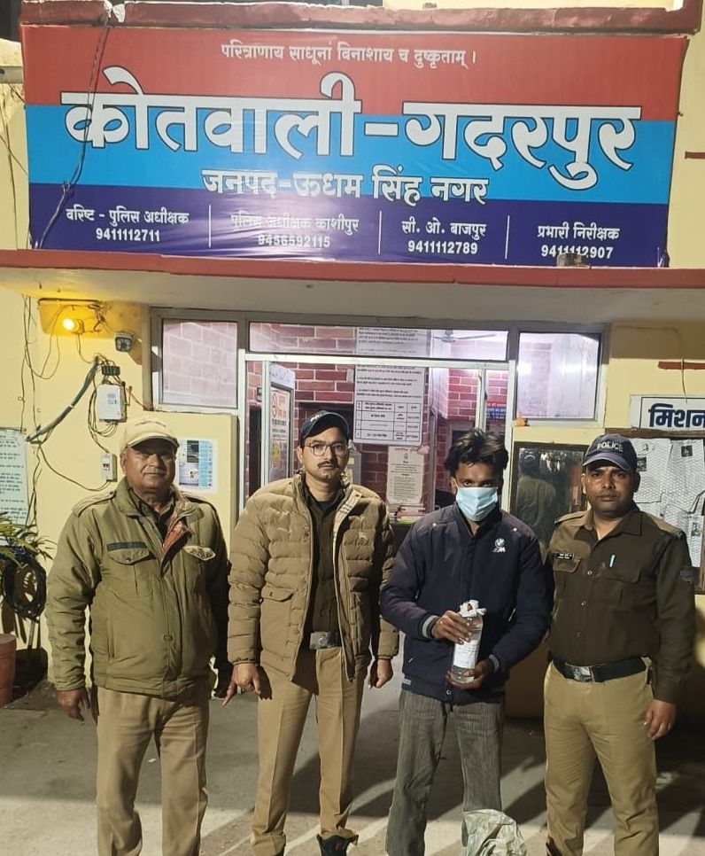 गदरपुर श्रीमान वरिष्ठ पुलिस अधीक्षक महोदय,जनपद उधमसिंहनगर द्वारा जनपद में अवैध कच्ची शराब की रोकथाम व नशे के विरुद्ध अभियान चलाकर कार्यवाही करने के निर्देश दिए गए हैं निर्देश के क्रम में श्रीमान पुलिस अधीक्षक काशीपुर महोदय के निर्देशन व क्षेत्राधिकारी बाजपुर महोदय के पर्यवेक्षण तथा प्रभारी निरीक्षक गदरपुर के नेतृत्व में चौकी गूलरभोज पुलिस द्वारा आज दिनांक 12/02/2026 को मुखबिर की सूचना पर हरिपुर जलाशय डैम रैम्प रोड के पास से अभियुक्त अमरजीत सिंह पुत्र इन्दर सिंह निवासी ग्राम हरिपुरा हरसान कोतवाली बाजपुर जिला उधमसिंहनगर उम्र 22 वर्ष के कब्जे से एक प्लास्टिक के कट्टे के अंदर काले रंग के रबर ट्यूब में 30 लीटर कच्ची शराब खाम बरामद किया गया,जिस पर कोतवाली गदरपुर में आबकारीअधिनियम का अभियोग पंजीकृत कर अग्रिम कार्यवाही की जा रही हैं !