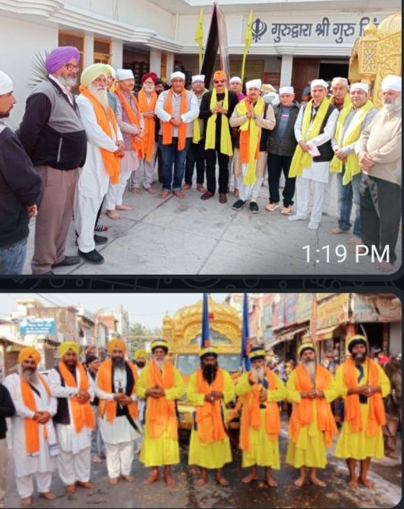 गदरपुर । श्री गुरु तेग बहादुर के अलावा शहीद भाई मतिदास, सती दास एवं दयाला जी की शहादत के 350 वें वर्ष पर गुरुद्वारा सिंह सभा गदरपुर द्वारा एक नगर कीर्तन का वार्ड नंबर 7 स्थित शिव मंदिर सनातन गुरुद्वारा परिसर से शुभारंभ अरदास के साथ किया गया । नगर कीर्तन में श्री गुरु ग्रंथ साहिब जी की पालकी के सम्मुख पंच प्यारे निशान साहिब लेकर,खालसा परिधान में सजे बच्चों की फौज,स्त्री सत्संग सभा के शब्द कीर्तनी जत्धे, नगाड़ा, फेयरलेस गतका पार्टी,निरभउ गतका अखाड़ा के अलावा विभिन्न संस्थाओं के पदाधिकारी एवं कार्यकर्ता सहित तमाम संगत शामिल हुई । गुरु तेग बहादुर जी के 350 वें शहीदी समागम में शामिल संगत का पुष्प वर्षा एवं बोले सो निहाल, सत श्री अकाल के जयकारों से स्वागत किया गया । नगर कीर्तन में गुरुद्वारा श्री गुरु सिंह सभा, पुरातन सनातन धर्म मंदिर, श्री सनातन धर्म मंदिर, शिव मंदिर, शिव पार्वती मंदिर ,श्री रामलीला कमेटी, विभिन्न किसान संगठनों के अलावा मुस्लिम समुदाय के लोगों ने सहभागिता की। वही रेड रोज कान्वेंट स्कूल एवं गुरु नानक स्कूल के बच्चों द्वारा पहुंचकर शब्द कीर्तन और बोले सो निहाल के जयकारे गुंजायमान किेए । इस दौरान प्रदेश मंत्री गुंजन सुखीजा नगर पालिका अध्यक्ष मनोज गुम्बर नरेंद्र सिंह ग्रोवर, नैब सिंह धालीवाल,अजीत भुसरी, राजकुमार भुड्डी,राकेश भुड्डी, हरभजन सिंह सैनी,अजैब सिंह, सलविंदर सिंह,जसवंत चुग, सविंदर कौर रोजी,निशु ग्रोवर सहित तमाम लोग संगत के रूप में शामिल हुए ।