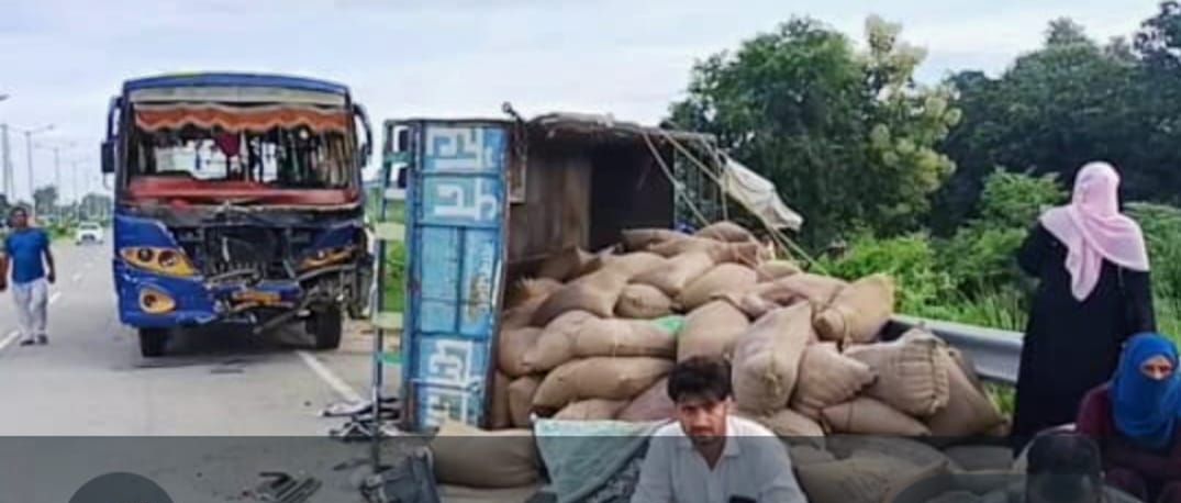 बस ने ट्रैक्टर ट्राली को मारी जोरदार टक्कर,10यात्री घायल 2 की हालत गंभीर।