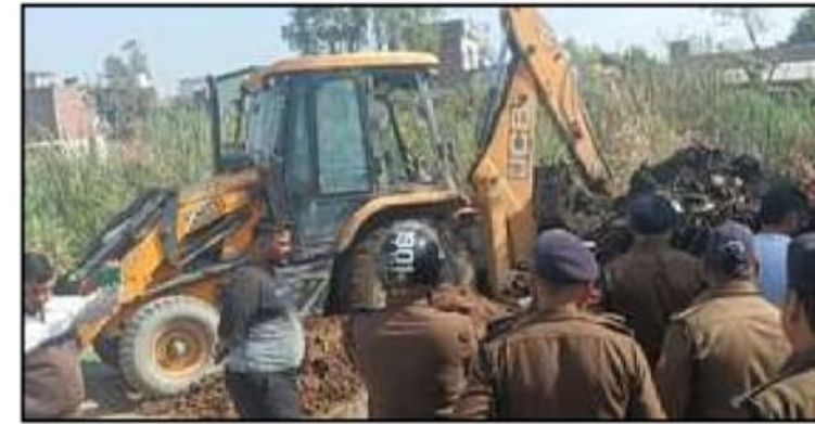 गदरपुर (संवाद सूत्र) तहसील गदरपुर के ग्राम सकैनिया पर राजकीय भूमि श्रेणी 6 (1) जलमग्न भूमि पर स्थित तालाब पर किए गये अतिक्रमण को उपजिलाधिकारी श्रीमती रिचा सिंह तथा तहसीलदार श्रीमती लीना चंद्रा के साथ राजस्व टीम द्वारा पुलिस बल के सिा हटाया गया। विदित हो कि ग्राम सकैनिया के ग्रामीणों द्वारा उक्त तालाब से पानी की निकासी न हो पाने से वर्षा ऋतुओं में उनके खेतों में जल भराव हो जाने से कृषि कार्य संभव न हो पाने तथा अन्य परेशानियों का सामना करने के कारण माननीय उच्च न्यायालय में जनहित याचिका दायर की गई थी। जिसके बाद जाँच करने पर यह पाया गया कि उक्त तालाब की कई वर्षों से सफाई न हो पाने के कारण बड़ी बड़ी घास एवं गात से भरा पड़ा है। साथ ही उक्त तालाब के खतौनी में दर्ज क्षेत्रफल 0.2900 हेक्टेयर पर दो दुकानों का अतिक्रमण भी पाया गया। जिस पर प्रशासन द्वारा कार्यवाही करते हुए अतिक्रमणकारियों को नियमानुसार नोटिस दिया गया। अपने पक्ष में कोई साक्ष्य न उपलब्ध करा पाने के कारण निर्धारित समय सीमा समाप्त होने पर प्रशासन द्वारा पुलिस टीम के साथ उक्त अतिक्रमण को हटा दिया गया। उक्त कार्यवाही में राजस्व विभाग. पलिस विभाग. लोक निर्माण विभाग. विद्युत विभाग एवं खंड विकास कार्यालय के कार्मिक उपस्थित रहे।