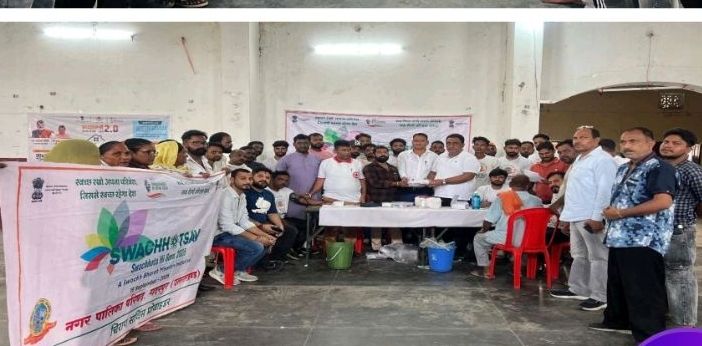 जिलाधिकारी महोदय, ऊधम सिंह नगर के स्वच्छता ही सेवा-2025 पखवाड़ा के अन्तर्गत आज दिनांक 23.09.2025 को सफाई मित्र सुरक्षा दिवस के अन्तर्गत नगर पालिका अध्यक्ष मनोज गुम्बर एवं अधिशासी अधिकारी कैलाश सिंह पटवाल के नेतृत्व में पर्यावरण मित्रो के स्वास्थ्य परीक्षण कराया गया तथा मेडिकल किट भी वितरीत की गयी एवं रक्तदान शिविर के अन्तर्गत पर्यावरण मित्रो द्वारा रक्तदान किया गया इस अवसर पर पर्यावरण मित्रों को टीटनस के टीके भी लगाए गए उक्त स्वास्थ्य परीक्षण शिविर में नगर पालिका अध्यक्ष मनोज गुम्बर, अधिशासी अधिकारी कैलाश सिंह पटवाल, रेड क्रॉस सोसाइटी के अध्यक्ष डॉ. विप्रजीत विश्वास, संतोष गुप्ता एवं पालिका कार्मिक जयपाल शर्मा, श्रीमती दया जोशी, विजेंद्र कुमार, मुकेश कुमार, सुश्री प्रभा, रोहन गुप्ता, प्रिन्स, तौफिक, राहुल, उमेश, राजवीर एवं समस्त पर्यावरण मित्र उपस्थित रहे।