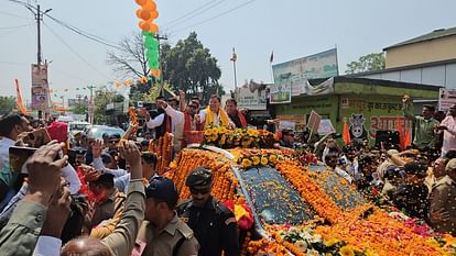 रुद्रपुर (संवाद सूत्र)। मुख्यमंत्री पुष्कर सिंह धामी ने रुद्रपुर के गल्ला मंडी पहुंचे। यहां सीएम का जोरदार स्वागत किया गया। मुख्य बाजार में रोड शो के दौरान स्थानीय लोगों ने जगह-जगह पुष्प वर्षा कर उनका उत्साहपूर्ण अभिनंदन किया। सीएम ने हाथ जोड़कर भीड़ का अभिवादन किया। इस दौरान मेयर विकास शर्मा, विधायक शिव अरोड़ा, पूर्व विधायक राजेश शुक्ला सहित कई प्रमुख नेता उनके साथ मौजूद रहे।