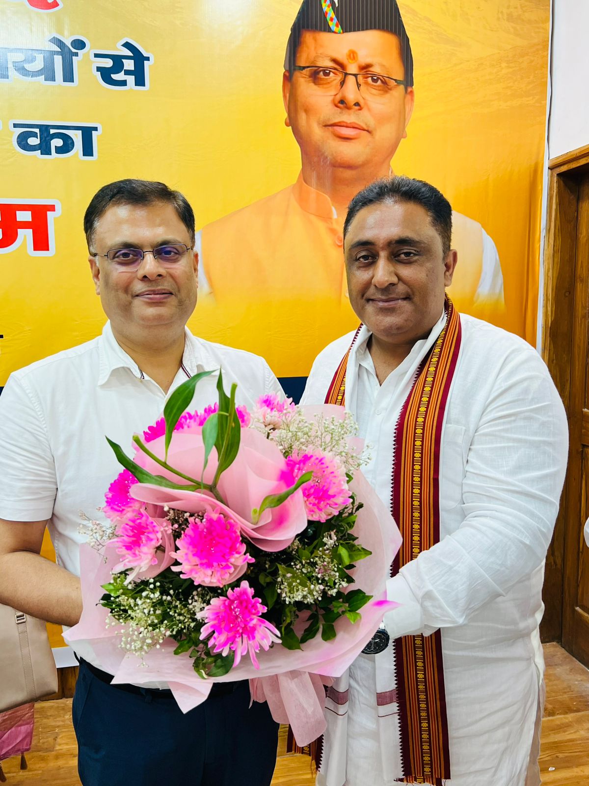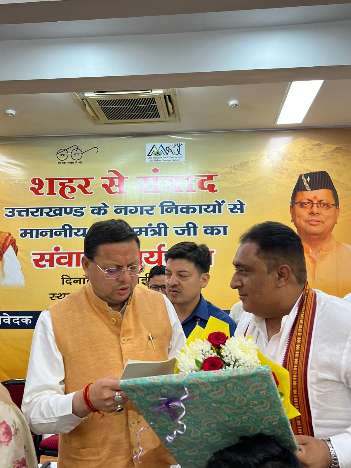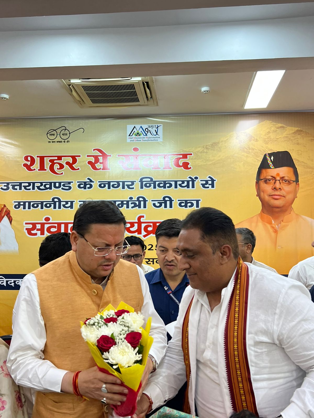 इस दौरान उन्होंने यशस्वी मुख्यमंत्री पुष्कर सिंह धामी व शहरी विकास सचिव (आई.ए.एस) नितेश कुमार झा को शॉल ओढ़ाकर एवं पुष्प गुच्छ देकर सम्मानित किया।