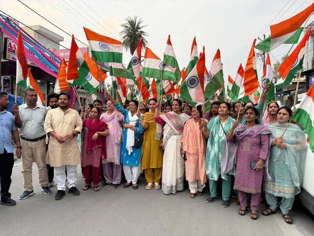 गदरपुर। नगर में आज बुधवार को भाजपा ने ऑपरेशन सिंदूर की सफलता के उपलक्ष्य में शौर्य सम्मान तिरंगा यात्रा निकाली। यात्रा राजकीय इंटर कॉलेज से शुरू होकर मुख्य बाजार से होते हुए सनातन धर्म मंदिर पर समाप्त हुई। भाजपा कार्यकर्ताओं सहित अन्य लोगों ने उत्साह के साथ यात्रा में हिस्सा लिया। इस दौरान सभी लोगों के हाथ में भारत का तिरंगा दिखाया दिया।