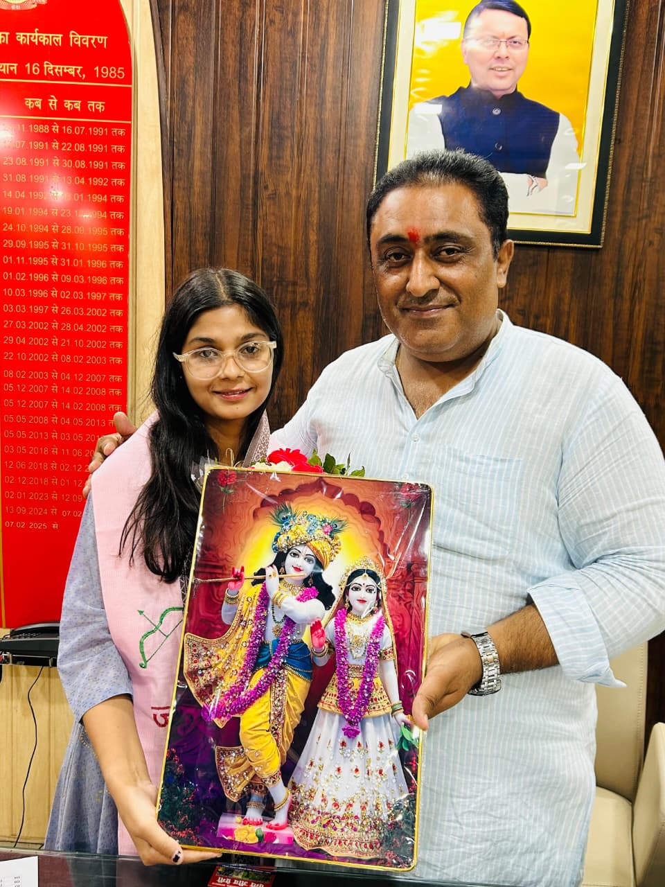 गदरपुर। वार्ड न 4 निवासी श्री नरेन्द्र ठाकुर एवं स्व.श्रीमति मालती ठाकुर की सुपुत्री कनिष्का ठाकुर के द्वारा नीट की परीक्षा पास करने पर गदरपुर का नाम रोशन किया गया, जिसके लिए उनको नगर पालिका कार्यालय गदरपुर मे आमंत्रित कर पालिकाध्यक्ष मनोज गुम्बर द्वारा उनका स्वागत कर सम्मानित किया गया एवं प्रभु से इनके उज्जवल भविष्य की कामना की।