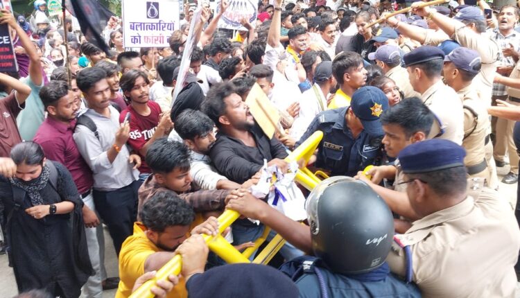 रूद्रपुर (संवाद सूत्र)। नर्स तस्लीमा जहां हत्याकाण्ड की सीबी आई जांच कराये जाने को लेकर आज सरदार भगत सिंह स्नातकोत्तर महाविद्यालय के सैकड़ों छात्र-छात्राओं ने जोरदार प्रदर्शन कर एसएसपी कार्यालय कूच किया,जहां पुलिस द्वारा उन्हे रोकने के लिये लगाई गई बेरिकेटिंग को तोड़ने के प्रयास में पुलिस की छात्र-छात्राओं से जोरदार झड़प भी हुई। इस दौरान प्रदर्शनकारियों ने पुलिस प्रशासन के खिलाफ जमकर नारेबाजी करते हुये जोरदार हंगामा भी किया। इससे पूर्व सैकड़ों की संख्या में छात्र-छात्राएं हाथों में तख्तियां लिये महाविद्यालय से जुलूस की शक्ल में रवाना हुयें जुलूस जब एसएसपी कार्यालय के समीप पहुंचा तो वहां मौजूद भारी संख्या पुलिस कर्मियों ने प्रदर्शनकारी छात्र-छात्राओं को एसएसपी कार्यालय परिसर में प्रवेश करने से रोकने के लिये बेरिकेटिंग लगा दी। जिस पर प्रदर्शनकारी छात्र-छात्राएं और भड़क गये और उन्होंने पुलिस के खिलाफ नारेबाजी करते हुये बेरिकेटिंग को पार करने की कोशिश की और उस पर चढ़ गये। जिस पर पुलिस कर्मियों ने प्रदर्शनकारी छात्र- छात्राओं को पीछे धकेलना शुरू किया। इस दौरान पुलिस और छात्र- छात्राओं में तीखी झड़प हो गई। छात्र-छात्राओं का आरोप था कि तस्लीम जहां हत्याकाण्ड में पुलिस मुख्य आरोपियों को बचाने की कोशिश कर रही है। इस मामले की सीबीआई जांच कराई जाये। उन्होंने एसएसपी द्वारा हाल ही में दिये गये बयान की कड़ी शब्दों में निन्दा करते हुये कहा कि एसएसपी ने कहा कि उन्होंने समाज को सुधारने का ठेका नही ले रखा। प्रदर्शन के दौरान छात्र-छात्राएं एसएसपी द्वारा पूर्व में दिये बयान के विरोध में ‘हम तालिबानी नही,बल्कि छात्र है हिन्दुस्तान के’ जैसे नारे भी बार-बार लगाते नजर आये। छात्र-छात्राओं ने एसएसपी कार्यालय परिसर के मुख्य द्वार के समक्ष धरना प्रदर्शन शुरू कर दिया। इस बीच वार्ता के लिये आये एसपी सिटी मनोज कात्याल ने रोषित छात्र-छात्राओं को समझाने की कोशिश की और कहा कि पुलिस वार्ता के लिये तैयार है। छात्र-छात्राओं में से 5 लोगों का शिष्टमण्डल वार्ता के लिये आ सकता है। लेकिन छात्र-छात्राओं ने उनकी बात को अनसुना कर नारेबाजी जारी रखी।
